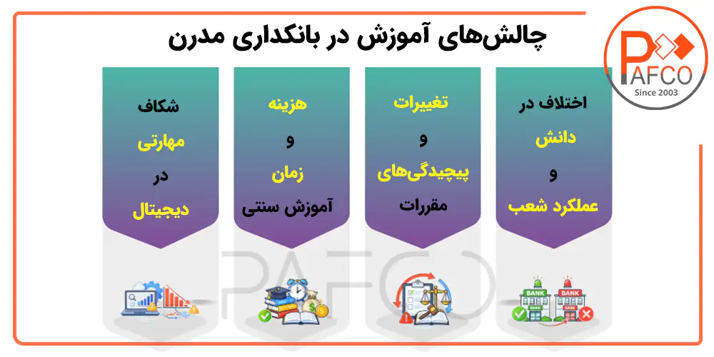 بانکها به دلیل گستردگی عملیات، تعداد بالای شعب، و حساسیت بالای قانونی، با چالشهای آموزشی منحصربهفردی مواجه هستند: